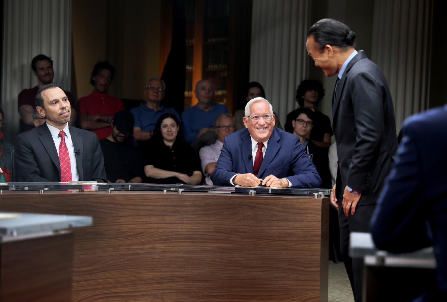 Famed biographer Walter Isaacson sits at the “Truth Under Fire” table, too. There comes a moment when Tang asks him whose job it is to tell the truth to voters. By that point, Descovich has expressed regret about possibly misjudging Glaude’s civics teacher, and one candidate in this fantasy gubernatorial race knowingly has capitalized on a manufactured scandal.
